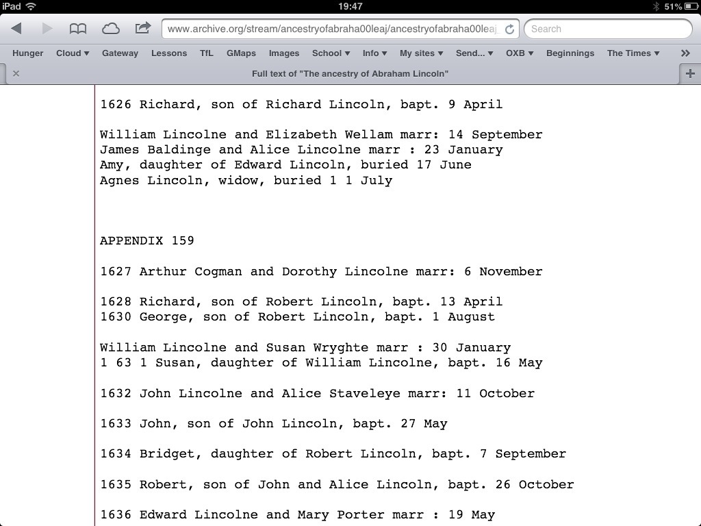 And it’s nice to see Hollywood finally acknowledge my kinsman: one of my father’s mother’s family (the Cogmans) emigrated in the 1600s and prudently married into Abe’s lot (vide 1627):