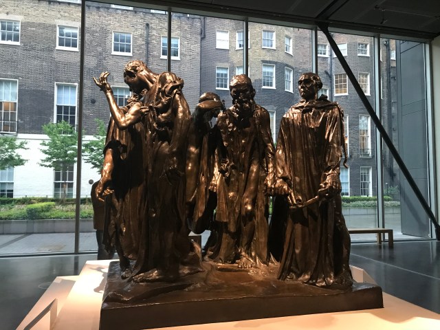 and the burghers of calais shows suffering in a variety of individualised forms; and represents a development from the thinker, from suffering as brute agony to suffering as a stimulus to those things which dignify our existence (this is top material, I am sure, for the how they are related section below); the burghers, in their individual poses and expressions of grief and strength-in-grief, are inspirational exempla of courage and willing self-sacrifice (they offered their own lives up to save their city)