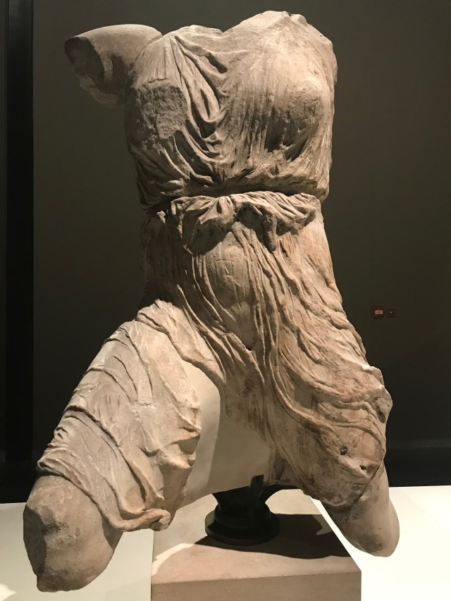 but if we’re talking about suffering and expression (and i think we are), the biggest surprise of the night was a 2,500-year-old sculpture of a horse’s head: that of one of the pullers of the chariot of selene, the moon goddess; tucked into the low corner of a pediment, its body beneath the horizon, and its jaw hanging over it, this exhausted steed’s face (for face it is) made me gasp